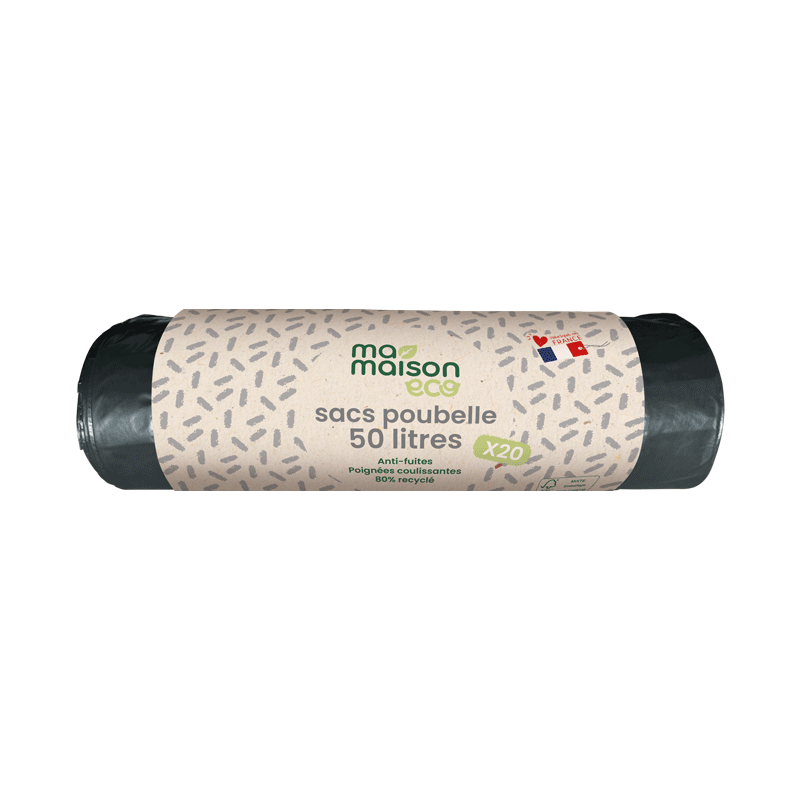 Les sacs poubelle 50 litres Ma Maison Eco sont fabriqués à partir de 80% de plastique recyclé minimum. Fabriqués en France, ils sont en polyéthylène basse densité.