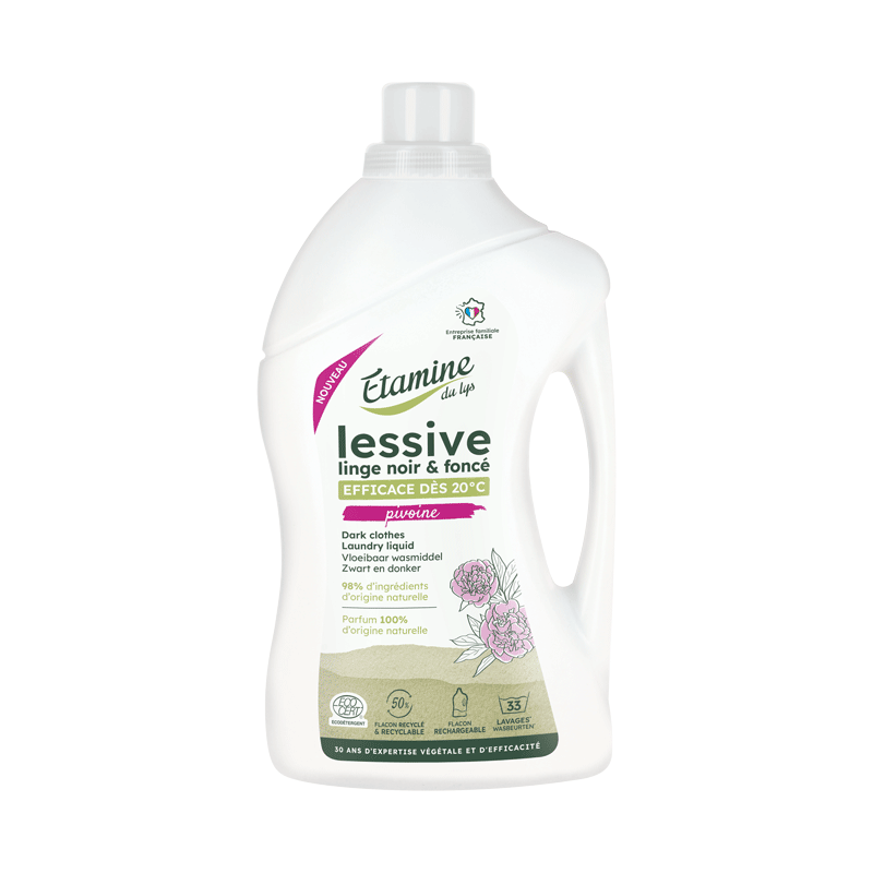 Prenez soin de vos vêtements noirs et foncés avec notre lessive Etamine du Lys spécialement formulée pour préserver l’intensité des couleurs lavage après lavage. Grâce à sa composition à 98 % d’ingrédients d’origine naturelle et à son parfum délicat 100 % naturel aux notes florales de pivoine, elle allie efficacité, douceur et respect de vos textiles. Certifiée Ecocert et fabriquée en France, cette lessive incarne un choix responsable et engagé pour votre linge comme pour la planète.