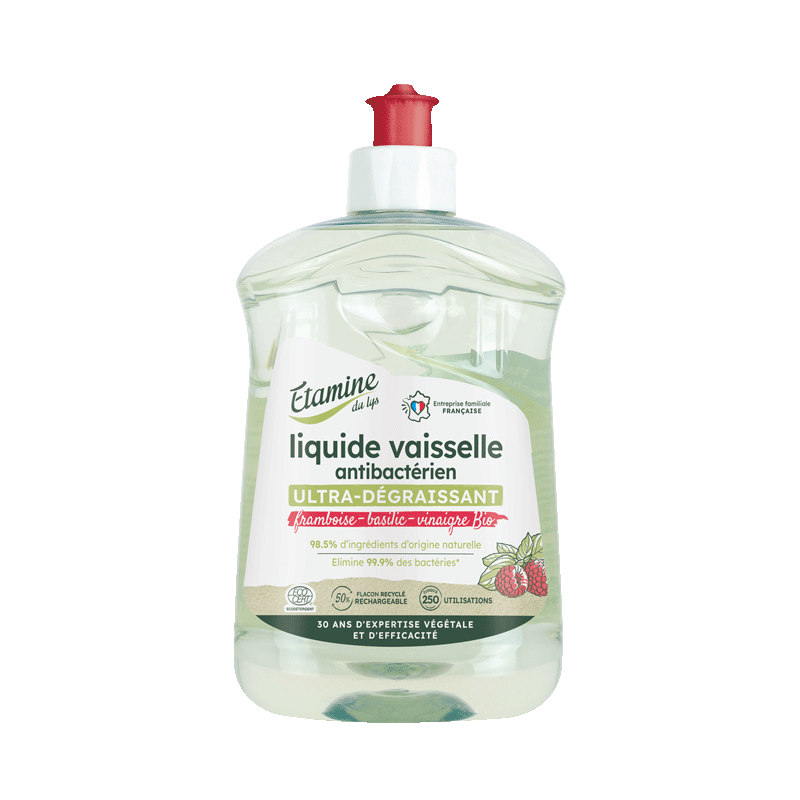 Le Liquide Vaisselle antibactérien Etamine du lys élimine 99.9% des bactéries présentent sur votre vaisselle.