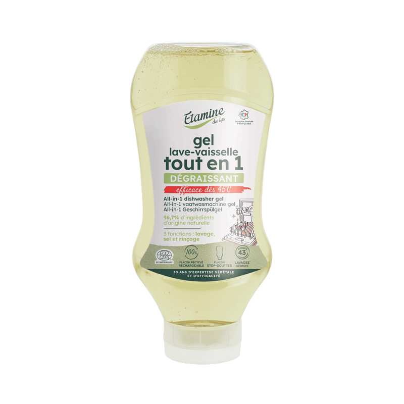 Prenez soin de votre vaisselle et de la planète avec notre gel lave-vaisselle tout en 1 Etamine du Lys, conçu pour allier performance, praticité et éco-responsabilité.
